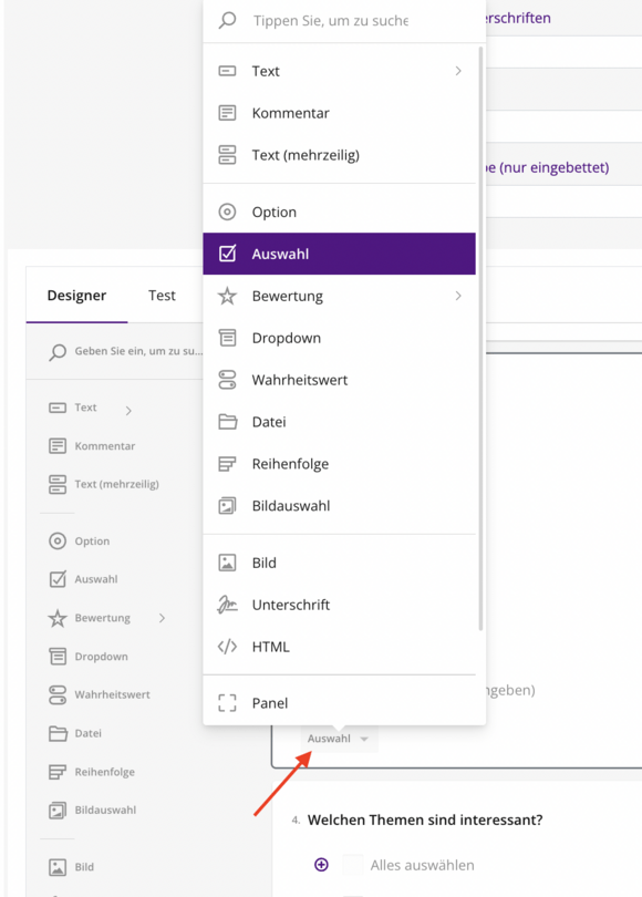 Außerdem: Felder können nun bequem nicht nur in der jeweiligen "Feldkategorie" geändert werden (z.B. von Auswahl- zu Optionsfeld), sondern auch mit einem Klick zu einem ganz anderen Feld werden.